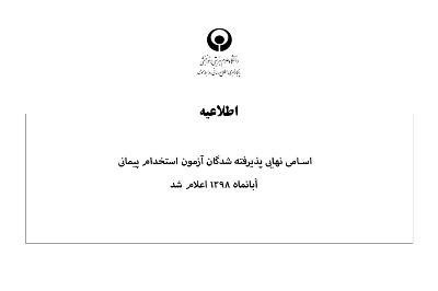 اخبار > اسامی نهایی پذیرفته شدگان آزمون استخدام پیمانی آبانماه 1398 اعلام شد