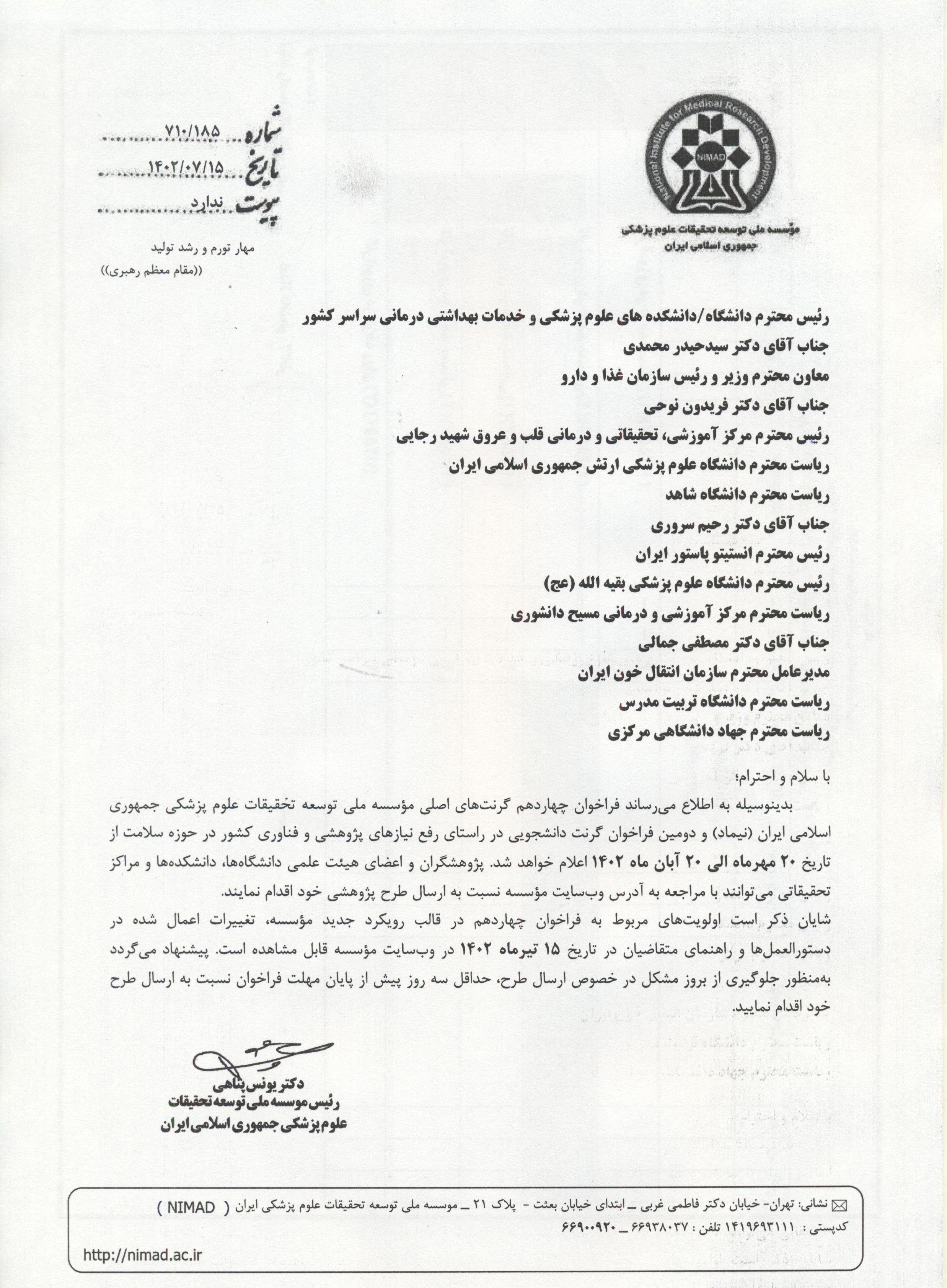 چهاردهم گرنت اصلي و دومين فراخوان گرنت دانشجويي- مهر ماه ١٤٠٢