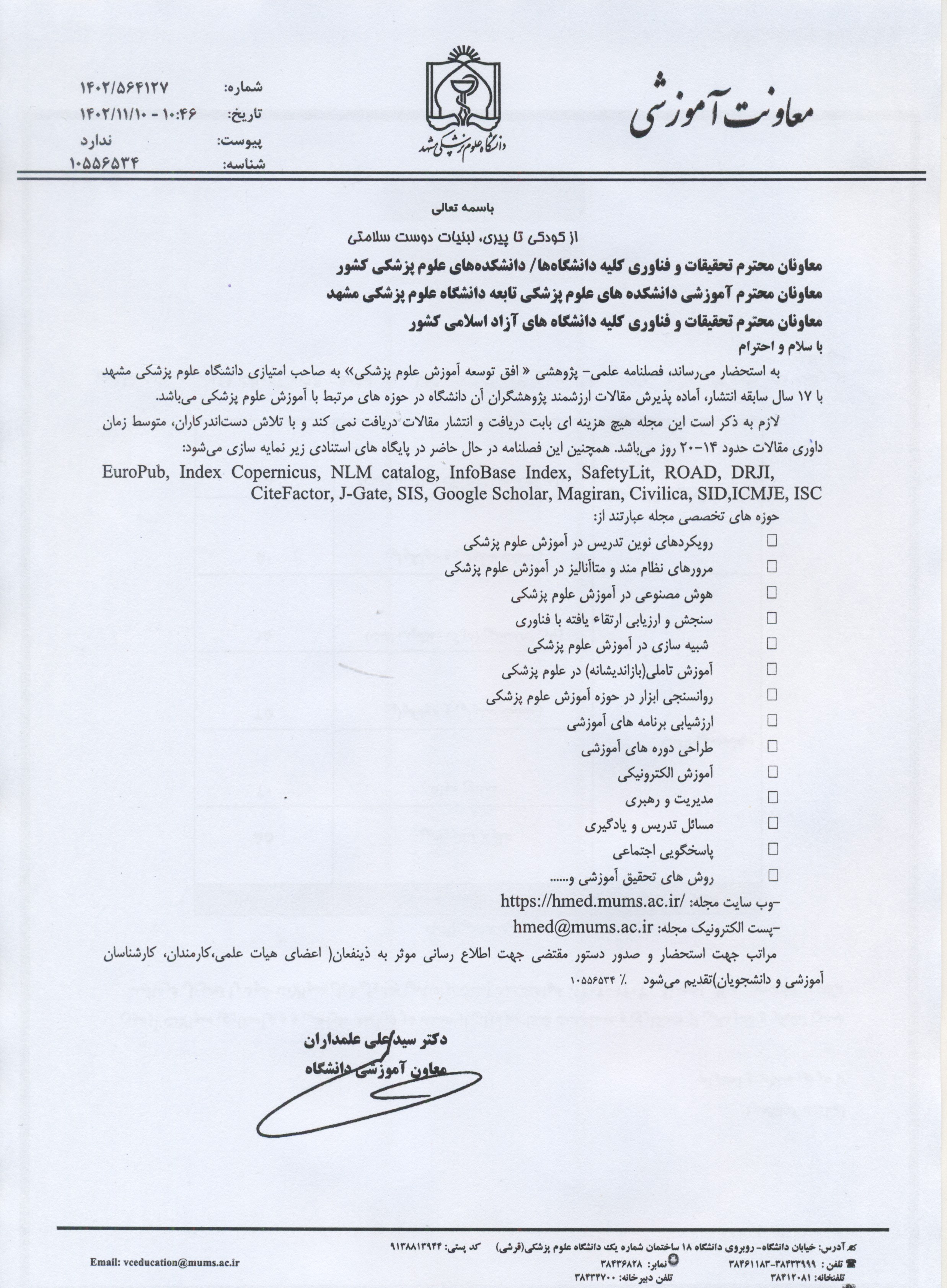 فراخوان ارسال مقاله در مجله علمي- پژوهشي افق توسعه آموزش علوم پزشكي