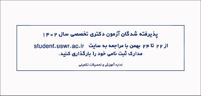 - اطلاعیه ثبت نام حضوری پذیرفته شدگان آزمون دكتري تخصصي سال ۱۴۰۲