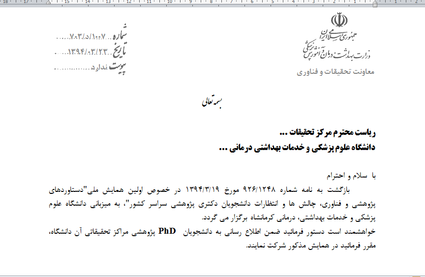 معاونت تحقیقات و فن آوری اطلاعات :اولین همایش ملی دستاوردهای پژوهشی و فناوری