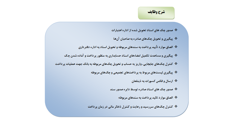 شرح وظایف واحد صدور چک